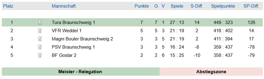Spieltag 1 – Das ging gut los, „Hännschen“ führte uns zum SiegDie Tabelle nach dem vierten SpieltagSpieltag 2 – In der „epischen Regenschlacht“ gelang Frank der entscheidende TrefferImmer wieder Training, die Gesprächsrunde gehört dazuIn Goslar strickten wir das Team rund um Bernd Goetzke, der mit seiner Ruhe und Erfahrung alle inspirierteStarkes Comeback. Man sieht es an den Minen: Alle hatten gegen Weddel ihr Bestes gegebenSpieltag 4: Bernd war es gelungen, Willi noch rechtzeitig ins Team zu holen – eine enorme Verstärkung, wie sich zeigteSpieltrag 3 war ein Triumph. Davon beflügelt hatten wir den Aufstieg fest im Visier„Schlosswölfe“ und „Löwen“ in Harmonie, die ganze Saison hindurch der Schlüssel zum Erfolg Der Moment des Aufstiegs – Roland und Frank machten alles klarSpieltag 4: Wieder ein wichtiges Kampfspiel. Willi, Toto und Thorsten behielten die Nerven und sicherten die PunkteWilhelm Schmidt, der TURA-Vorsitzende, beobachtete die Spiele und gratuliert hier Bernd Kakoschke zum Erfolg. Binnen Jahresfrist ist es Bernd gelungen, in unermüdlicher Arbeit, aus einer Vision Realität werden zu lassen.