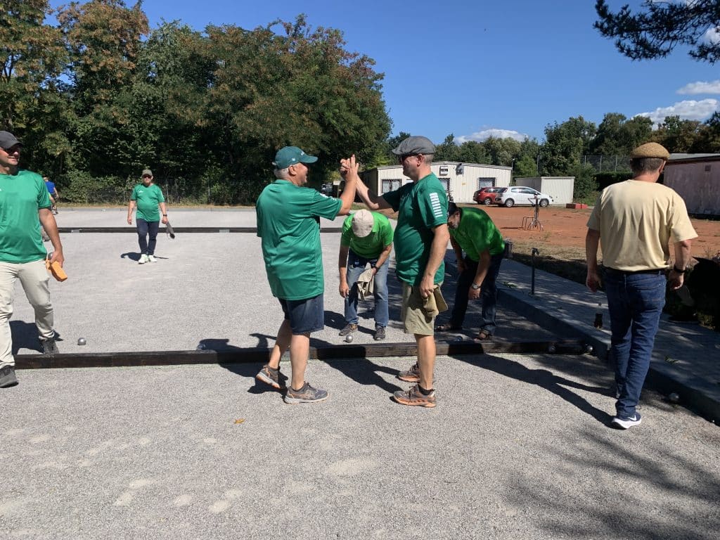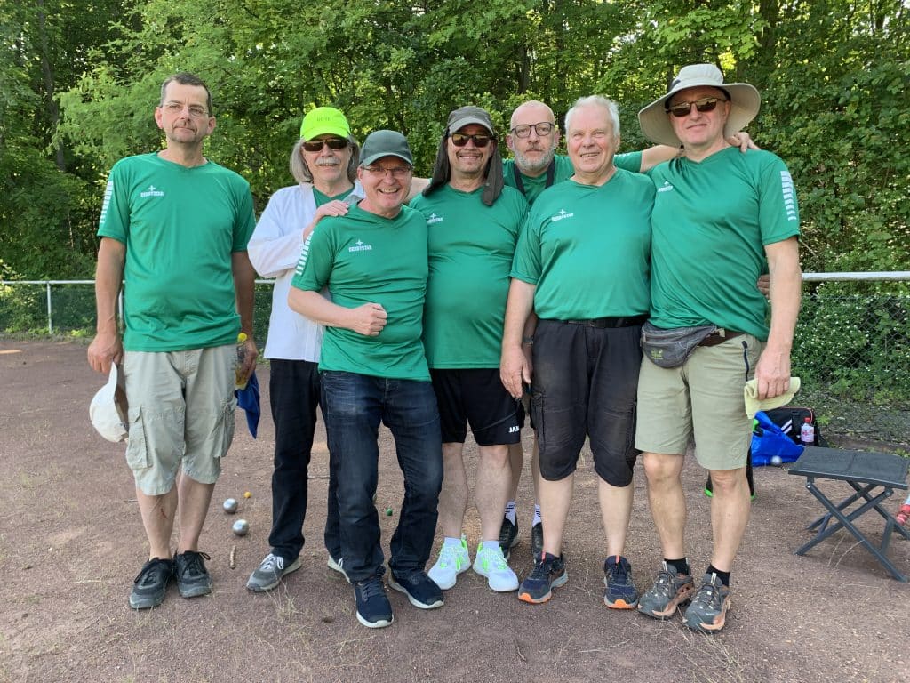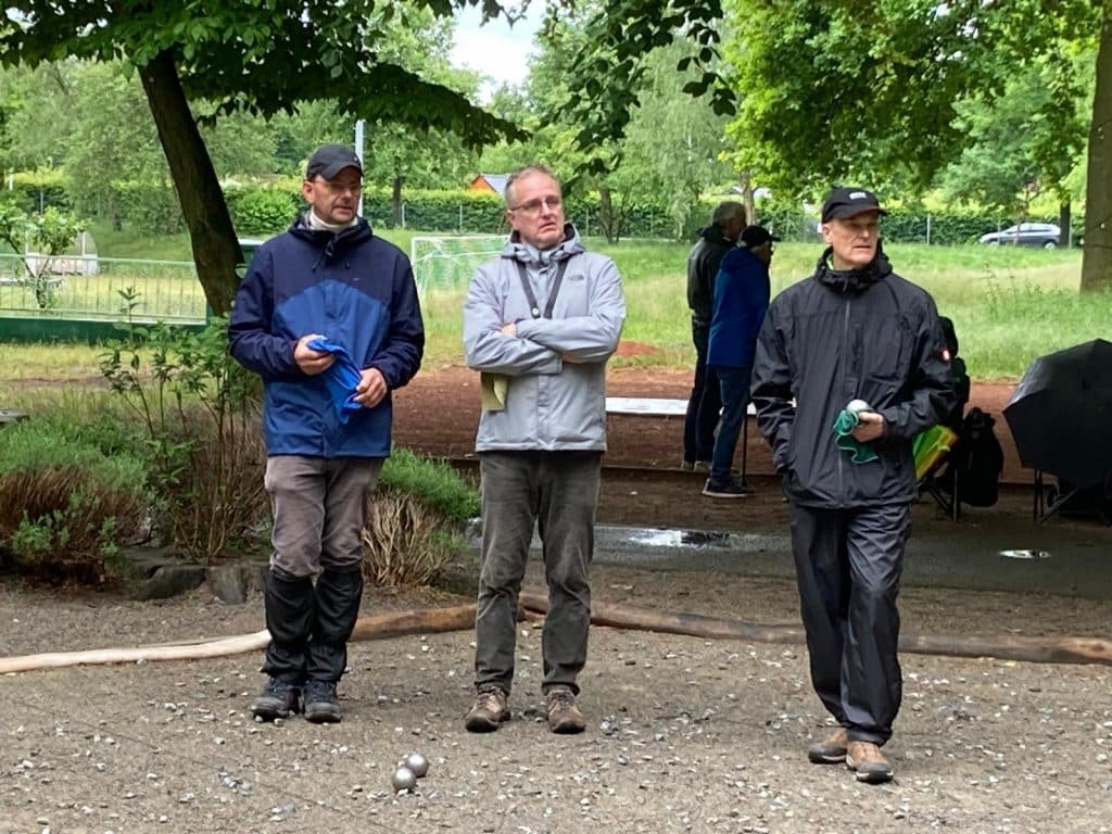 Es gelang uns, den ersten Spieltag ungeschlagen zu überstehen. An diesem Tag half uns das Heimrecht. Zudem hatte Boule-Urgestein und TURA-Ehrenmitglied Hanns-Wilhelm Goetzke als „Zünglein an der Waage“ all seine Erfahrung in den Ring geworfen.
